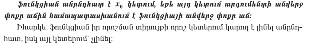 Рубрика: Հանրահաշիվ և մաթեմատիկական անալիզի տարրեր 11 1. Ֆունկցիայի անընդհատությունը Опубликовано 02.03.2020 автором Թաթուլ