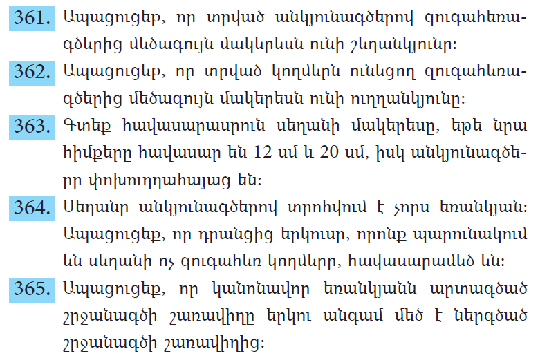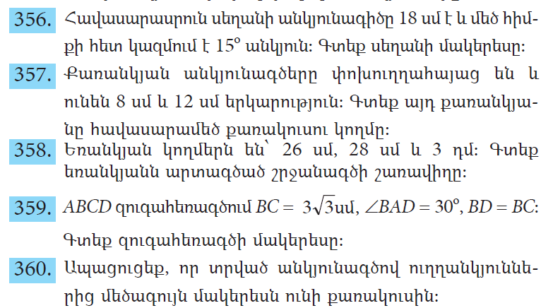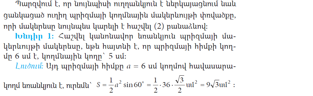Рубрика: 9-րդ դասարան Երկրաչափություն 45. ԶՈՒԳԱՀԵՌԱԳԾԻ ՄԱԿԵՐԵՍԻ ՀԱՇՎՄԱՆ ԲԱՆԱՁևԸ Опубликовано 18.03.2020 автором Թաթուլ