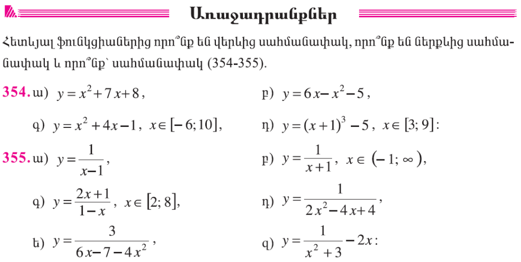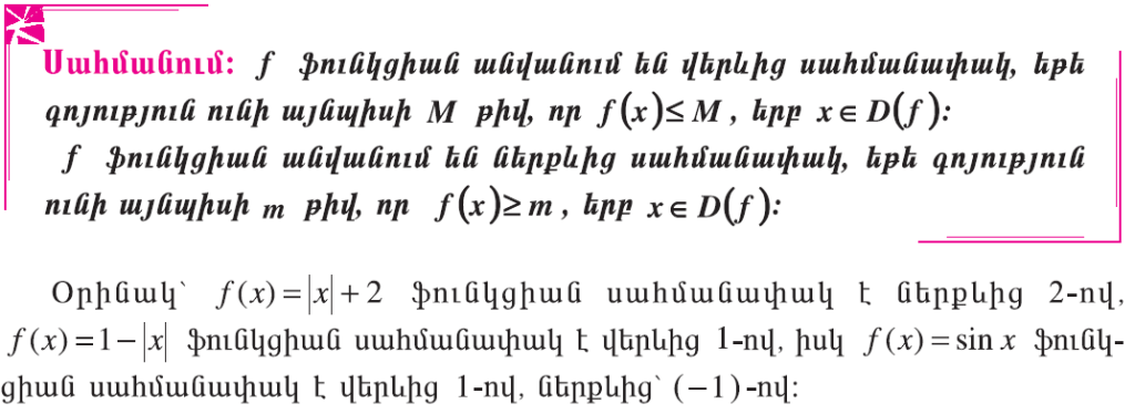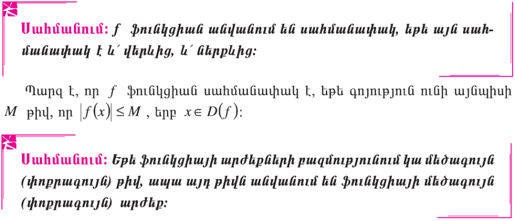 Рубрика: Հանրահաշիվ և մաթեմատիկական անալիզի տարրեր 10 6. Սահմանափակություն, մեծագույն և փոքրագույն արժեքներ Опубликовано 02.03.202006.03.2020 автором Թաթուլ
