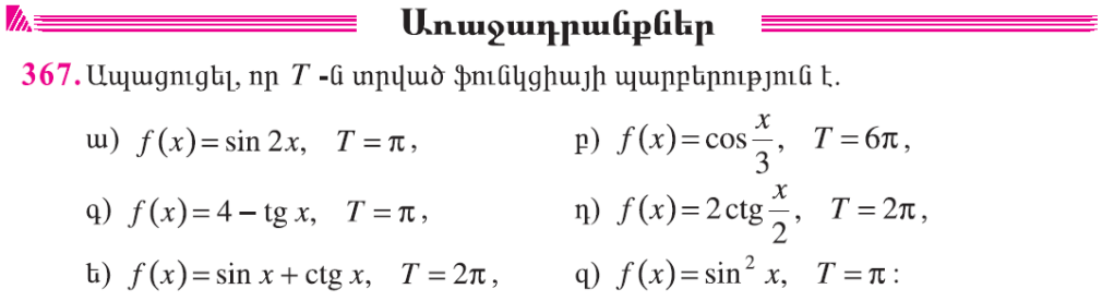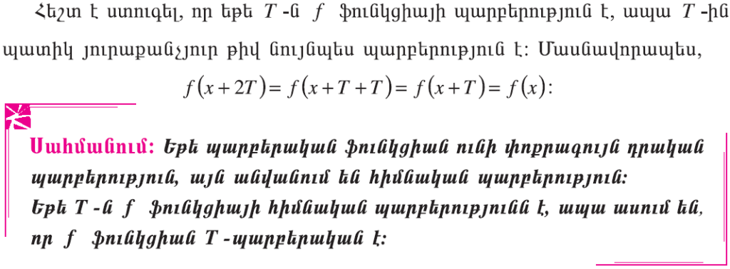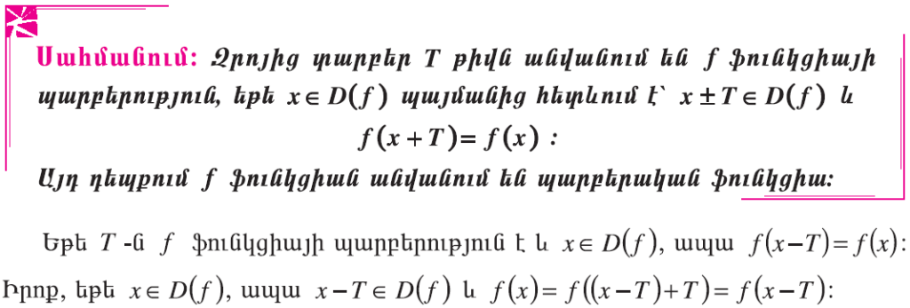 Рубрика: Հանրահաշիվ և մաթեմատիկական անալիզի տարրեր 10 7. Ֆունկցիայի պարբերականությունը Опубликовано 04.03.2020 автором Թաթուլ
