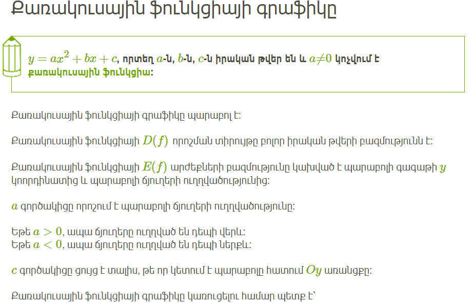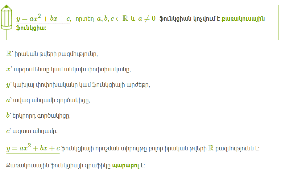 Рубрика: 9 Հանրահաշիվ և մաթեմատիկական անալիզի տարրեր, ԻՄ ՍՏԵՂԾԱԾ ՆՅՈՒԹԵՐԸ Քառակուսային ֆունկցիա Опубликовано 26.09.202008.10.2020 автором Թաթուլ