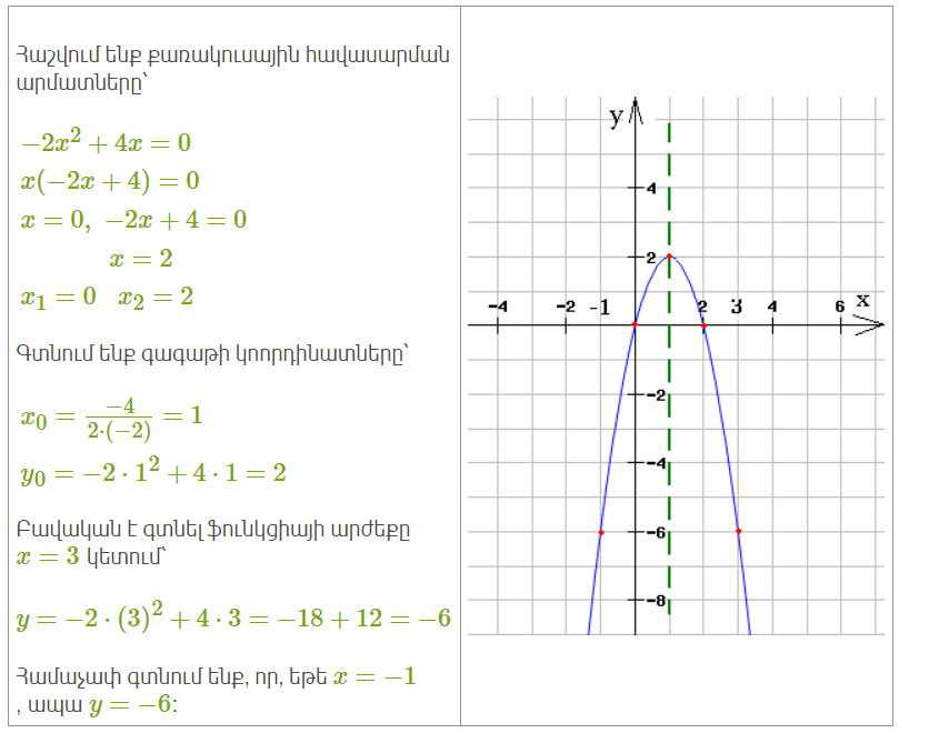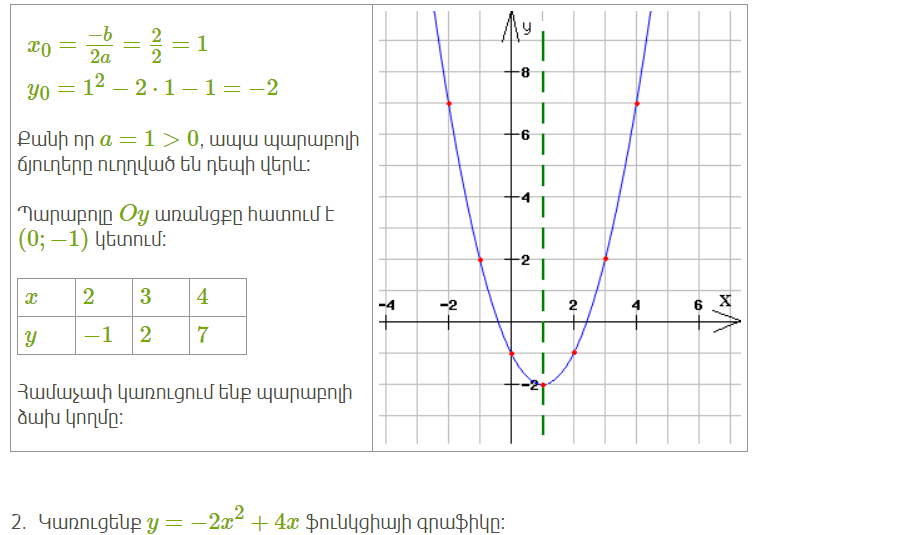Рубрика: 9 Հանրահաշիվ և մաթեմատիկական անալիզի տարրեր 1.6 Քառակուսային ֆունկցիայի գրաֆիկը Опубликовано 26.09.2020 автором Թաթուլ