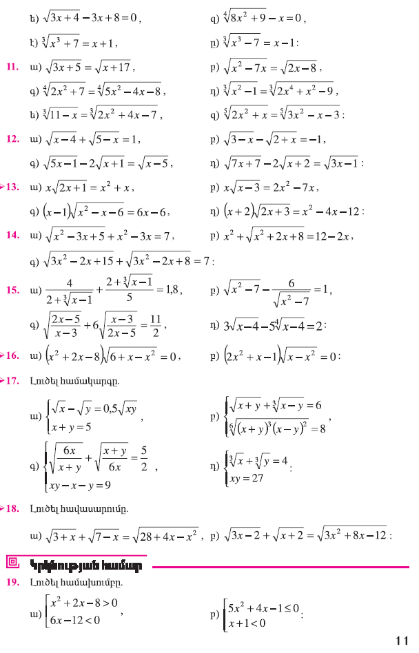 Рубрика: 12 Հանրահաշիվ և մաթեմատիկական անալիզի տարրեր 5. Համակցված հավասարումներ և անհավասարումներ Опубликовано 26.09.2020 автором Թաթուլ