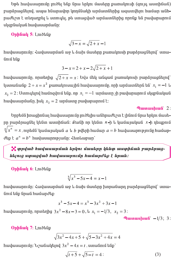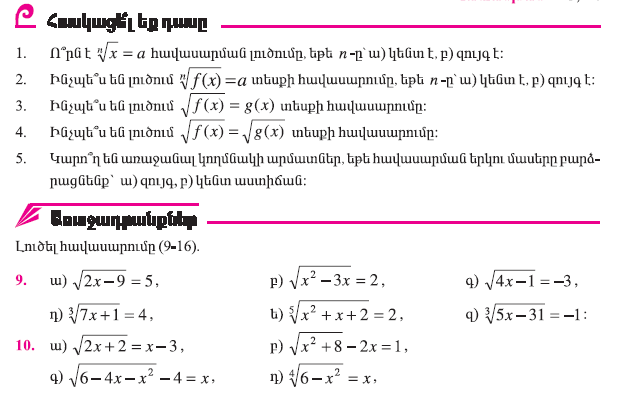 Рубрика: 12 Հանրահաշիվ և մաթեմատիկական անալիզի տարրեր 2. Իռացիոնալ հավասարումներ Опубликовано 16.09.2020 автором Թաթուլ