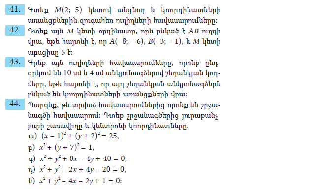 Рубрика: 9-րդ դասարան Երկրաչափություն 2. Շրջանագծի և ուղղի հավասարումները Опубликовано 16.09.2020 автором Թաթուլ
