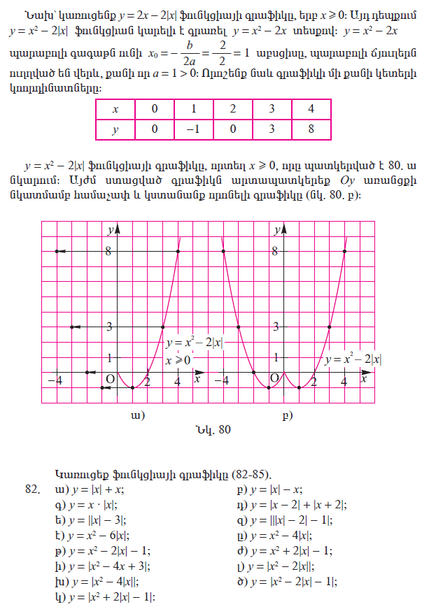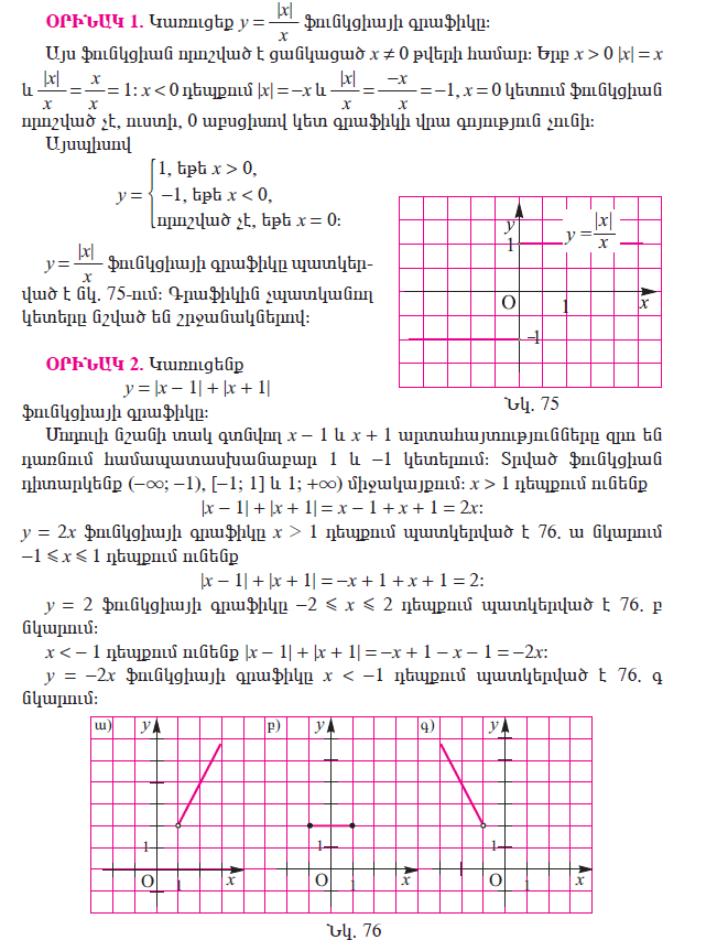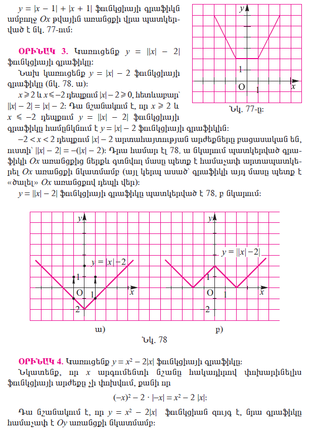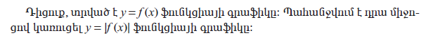Рубрика: 9 Հանրահաշիվ և մաթեմատիկական անալիզի տարրեր 1.8 Մոդուլ պարունակող ֆունկցիաների գրաֆիկները Опубликовано 06.10.2020 автором Թաթուլ
