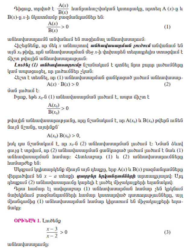 Рубрика: 9 Հանրահաշիվ և մաթեմատիկական անալիզի տարրեր 2.7 Ռացիոնալ անհավասարումների լուծումը Опубликовано 17.11.2020 автором Թաթուլ