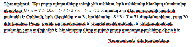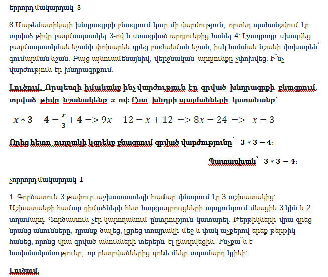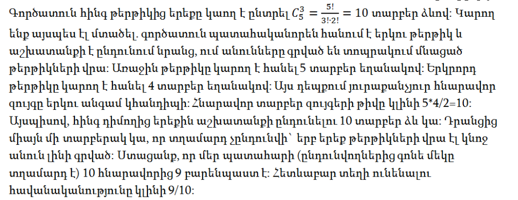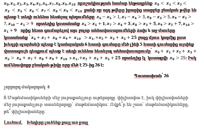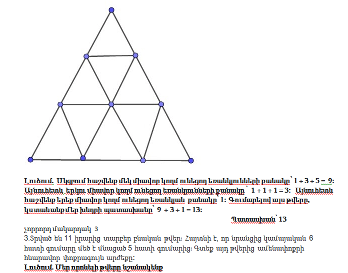 4.Արկղում կան կարմիր, կանաչ, կապույտ և դեղին 100 գնդակներ: Առանց նայելու՝ ամենաքիչը քանի՞ գնդակ է պետք հանել արկղից, որ գոնե տասը գնդակներ լինեն միևնույն գույնի: