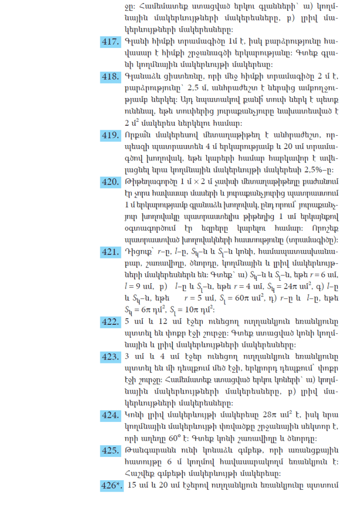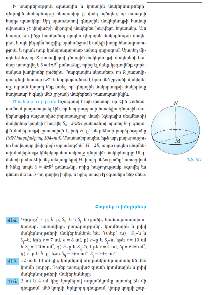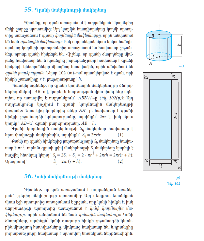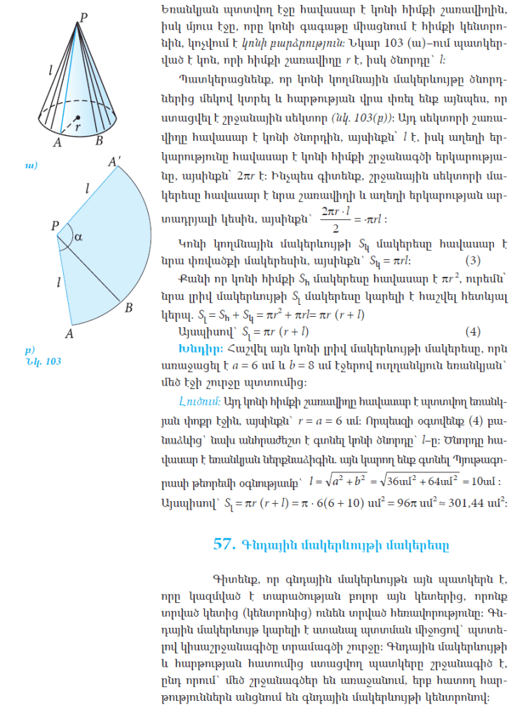 Рубрика: 9-րդ դասարան Երկրաչափություն Գլանի, կոնի և գնդի մակերևույթների մակերեսների հաշվումը Опубликовано 28.02.2021 автором Թաթուլ