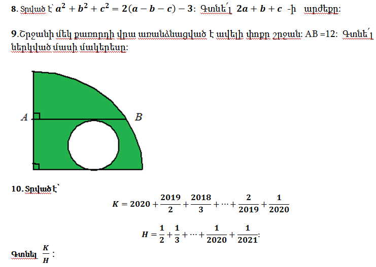 Մարտի ֆլեշմոբը մաթեմատիկայից խնդիրների լուծումներին կարող ենք ծանոթանալ նշված հղումով: