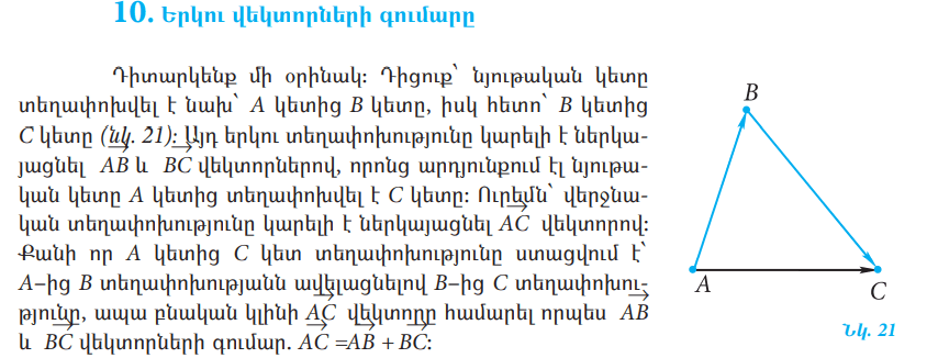 Рубрика: 9-րդ դասարան Երկրաչափություն 4.Վեկտորների գումարումը և հանումը Опубликовано 04.10.202110.10.2021 автором Թաթուլ Поделиться ссылкой: Нажмите, чтобы поделиться в X (Открывается в новом окне) X Нажмите, чтобы открыть на Facebook (Открывается в новом окне) Facebook Нравится Загрузка... Похожее Автор: Թաթուլ View All Posts