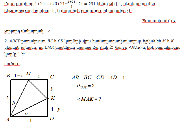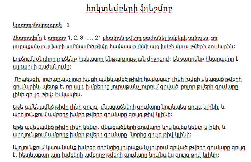 Հոկտեմբերի ֆլեշմոբը մաթեմատիկայից խնդիրների լուծումներին կարող ենք ծանոթանալ նշված հղումով: