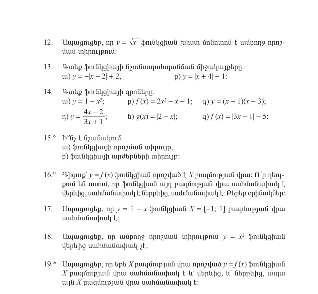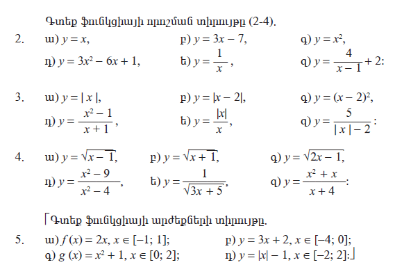 - Ֆունկցիայի աճման, նվազման, նշանապահպանման միջակայքերը և զրոները
