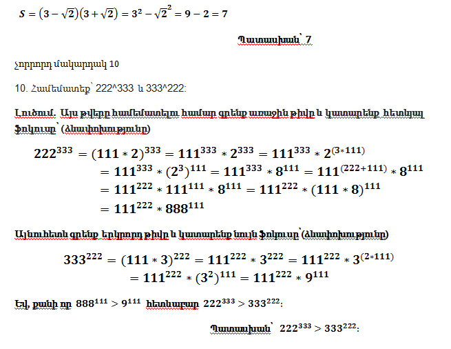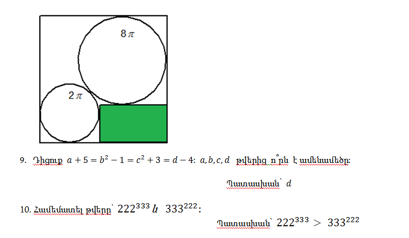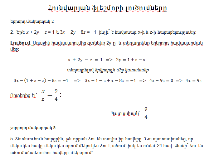 Մարտի ֆլեշմոբը մաթեմատիկայից խնդիրների լուծումներին կարող ենք ծանոթանալ նշված հղումով: