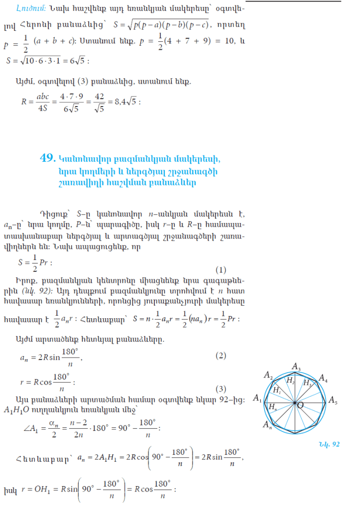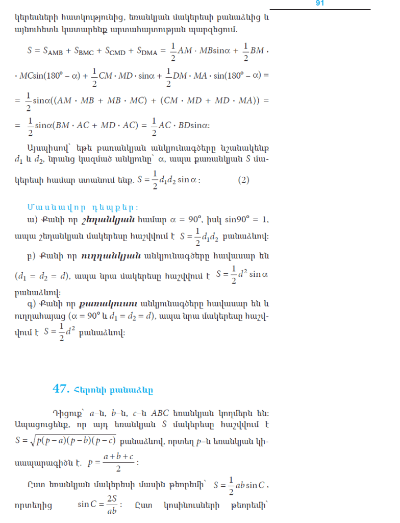 Рубрика: 9-րդ դասարան Երկրաչափություն Բազմանկյունների մակերեսների հաշվման բանաձևեր Опубликовано 02.02.2021 автором Թաթուլ